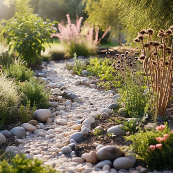 Another surface drainage option is a swale drain, a shallow channel shaped into the ground, often lined with rocks or native plants. It mimics a dry creek bed and becomes functional during heavy rain. Swales are a great option on larger blocks, especially acreage, as they blend into the landscape and help direct water toward rain gardens or dispersal pits.